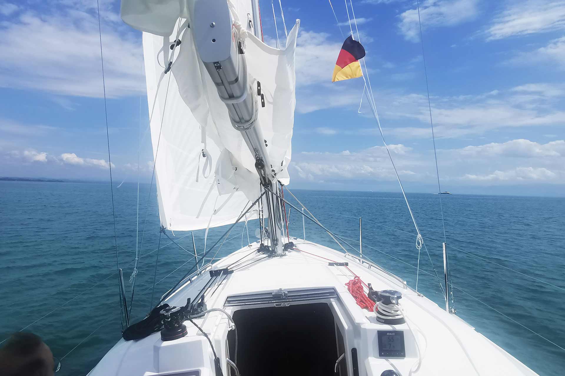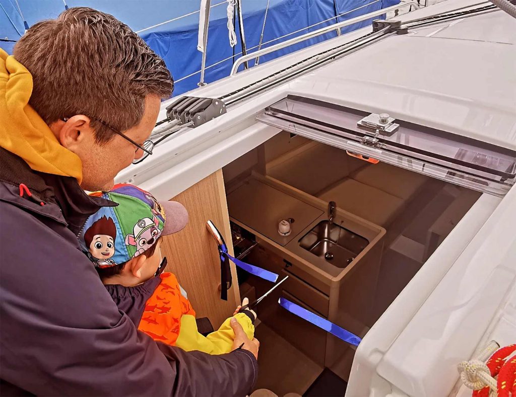 Die Familie lebt nicht weit weg vom schönen Bodensee, es lag also nahe, sich hier in diesem Revier um ein Boot zu kümmern. Heikos Frau und auch der junge Sohn sind schon oft mit segeln gewesen, die Idee, sich eine eigene kleine Yacht anzuschaffen nahm recht schnell konkrete Formen an. Heiko sagt, dass sie vor allem nach einem Boot mit viel Platz an und unter Deck geschaut haben: „Die Familientauglichkeit was das A und O bei der Bootssuche!“, meint er. Dabei spielte nicht nur das Volumen und die Ausstattung eine große Rolle, sondern auch die Sicherheit – Kleinkinder sind flink!
